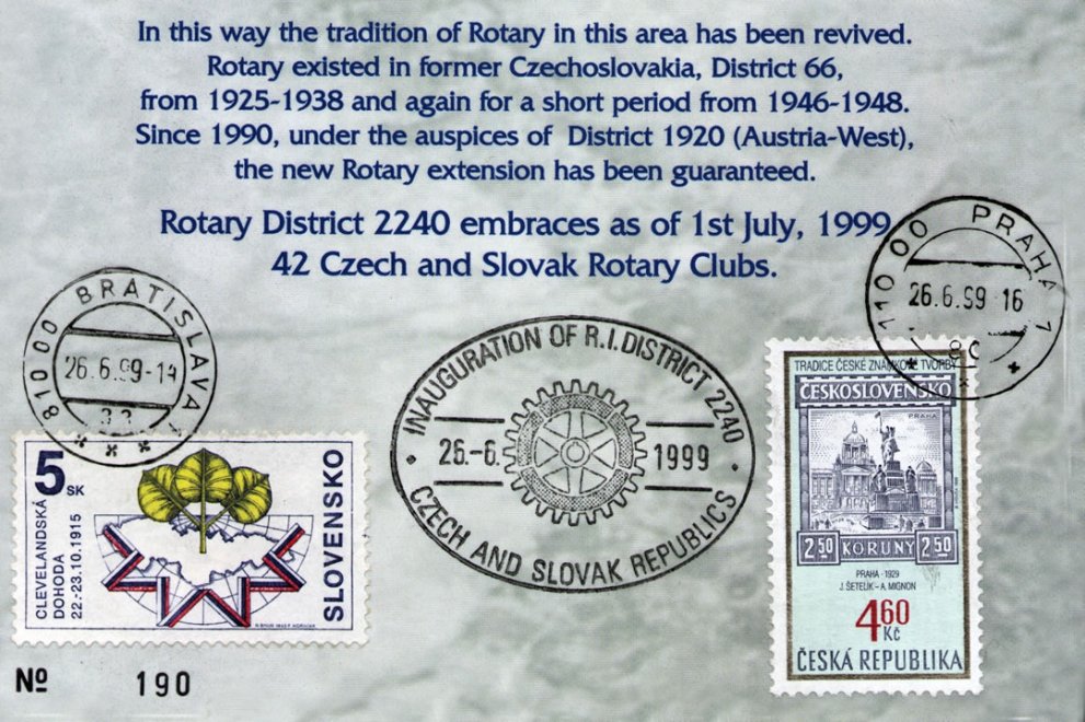 Pro společenství Rotary International má Žofín význam jako místo, kde se uskutečnila 26. června 1999 inaugurace Rotary distriktu 2240 tvořeného 42 českými a slovenskými Rotary kluby obnovenými nebo nově založenými po roce 1989 zásluhou rotariánů z hornorakouského Rotary distriktu 1920. Rotary distrikt 2240 navázal na tradici prvorepublikového československého Rotary distriktu 66 (založen 1927). Slavnosti se účastnil Carlo Ravizza, prezident RI pro období 1999/2000. Zdravici za patronátní rakouskou stranu přednesl bývalý místopředseda rakouské vlády Erhard Busek, za českou stranu Pavel Tigrid a za slovenskou stranu Fedor Gál. Oficiální delegace rotariánů byla přijata v průběhu inaugurace místopředsedy Senátu ČR Ivanem Havlíčkem a Jaroslavou Moserovou i pražským primátorem Janem Kaslem. Slavnosti se zúčastnilo 166 delegátů z Rotary klubů ČR a SR a na čtyři sta hostů z 18 zemí.