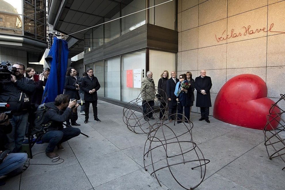 Prostor, známý dříve jako piazzetta Národního divadla sevřený mezi původními a novými divadelními budovami, navrhl český architekt Karel Prager v roce 1981 jako součást projektu výstavby Nové scény a umístil zde sochu Znovuzrození od národního umělce Josefa Malejovského. V roce 2016 navrhl generální ředitel Národního divadla Jan Burian přejmenovat tento prostor na náměstí Václava Havla jako poctu k jeho nedožitým 80. narozeninám. Zastupitelstvo hl. m. Prahy tento návrh schválilo a v úterý 4. října 2016 zde bylo slavnostně instalováno oficiální označení za přítomnosti vdovy Dagmar Havlové, ministra kultury Daniela Hermana, pražské primátorky Adriany Krnáčové, herečky Vlasty Chramostové či generálního ředitele divadla Jana Buriana. Současně zde byla umístěna instalace sochaře Kurta Gebauera v podobě velkého, 160 cm vysokého, srdce.